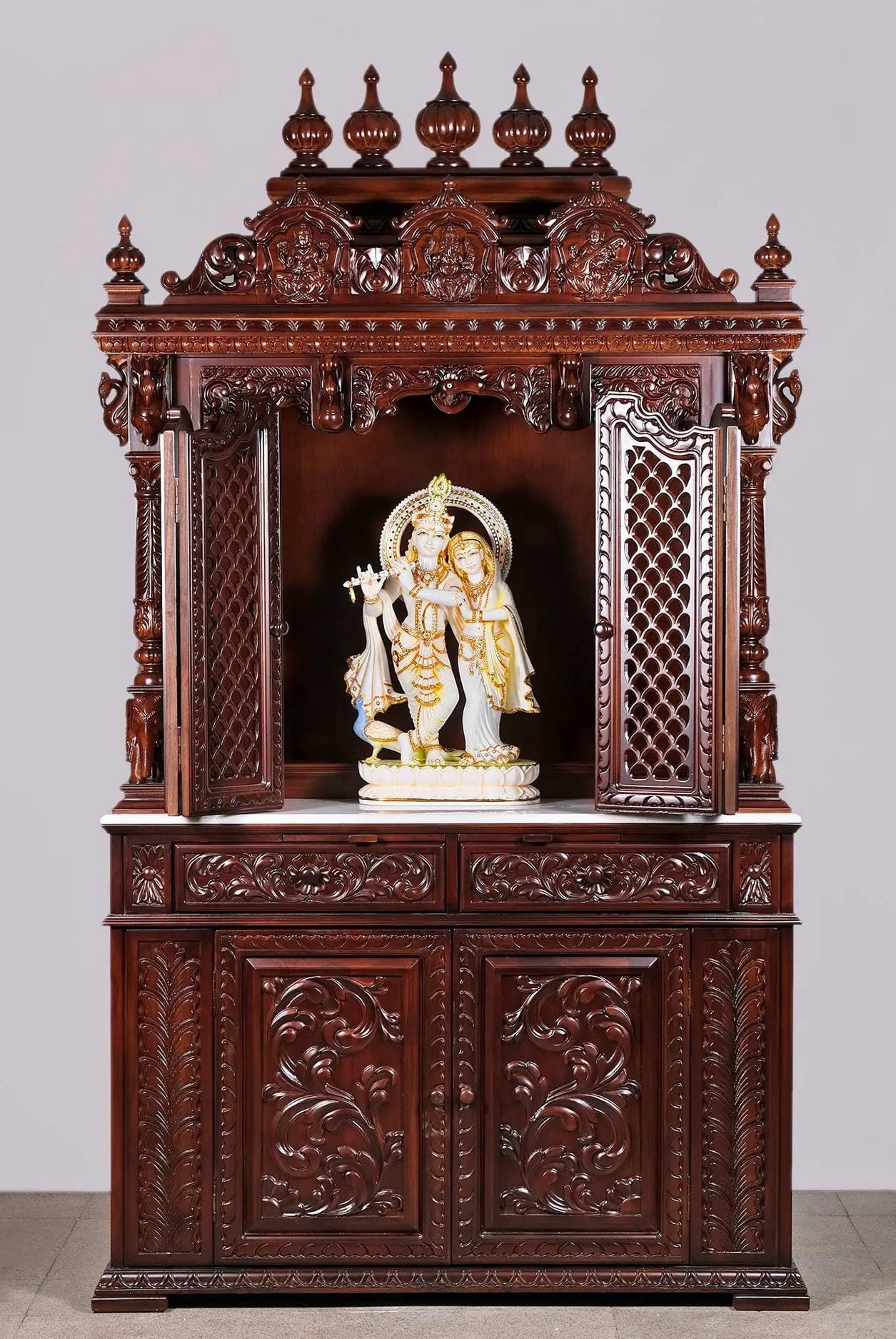 Wooden temples embody a blend of artistry and spirituality, offering a serene space for worship and reflection. These intricately crafted structures are designed to reflect both cultural heritage and divine beauty. Made from various types of wood, such as teak, sandalwood, and rosewood, each temple is meticulously carved with detailed motifs and symbols that hold religious significance. Wooden temples are not just functional; they are masterpieces of craftsmanship that enhance the aesthetic and spiritual ambiance of a space. The natural warmth and texture of wood contribute to a calming environment conducive to meditation and prayer. Whether used in homes, community centers, or places of worship, wooden temples provide a lasting and meaningful connection to tradition. Investing in a wooden temple means embracing a piece of cultural heritage that enriches your spiritual practices and adds a touch of elegance to your surroundings.